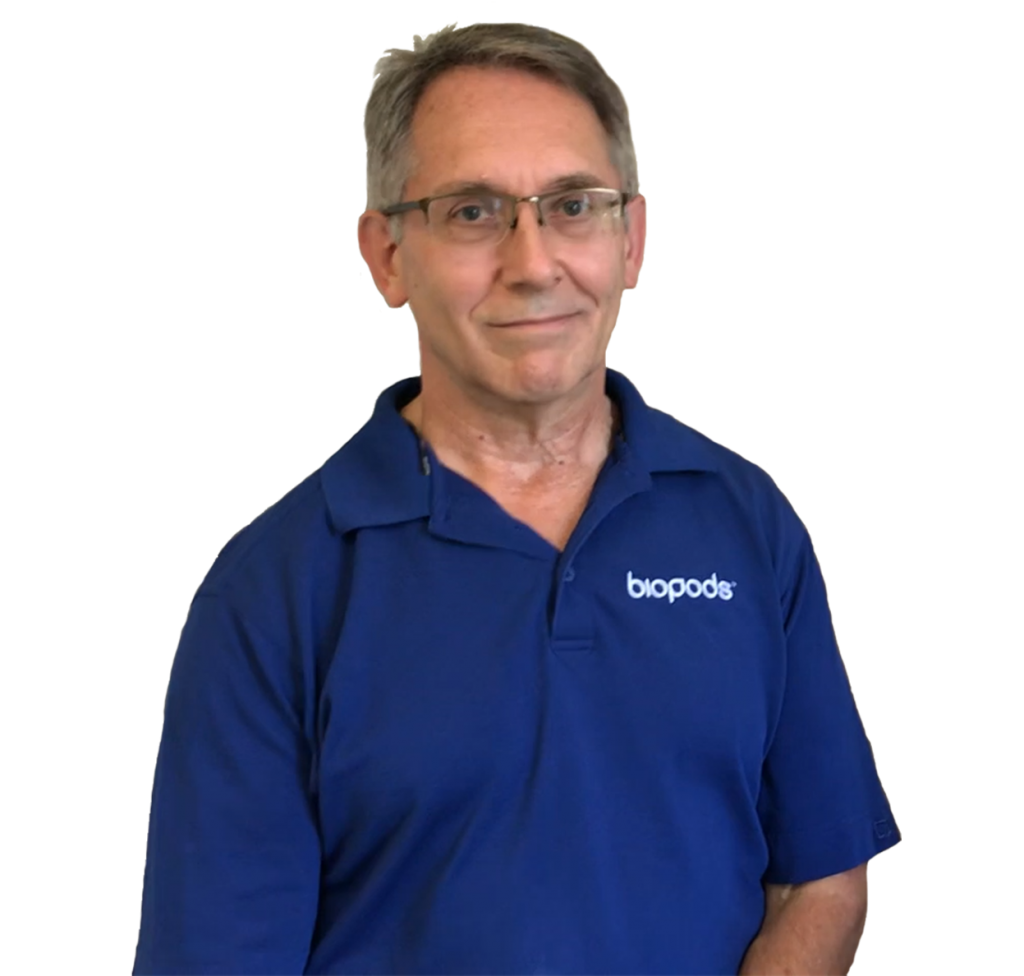My involvement in Biopods is the culmination of my participation in years of foot care research. During the mid-eighties, I was prescribing conventional orthotics in my practice. One of my patients, Roy Gardiner, introduced me to the concept of therapeutically rehabilitating the feet. I was intrigued and agreed to assist Roy in testing his theories by employing them with my patients. Over the years, as I participated in the evolving research and witnessed remarkable improvements in my patients, my belief in the traditional views of foot care and foot function were shattered.