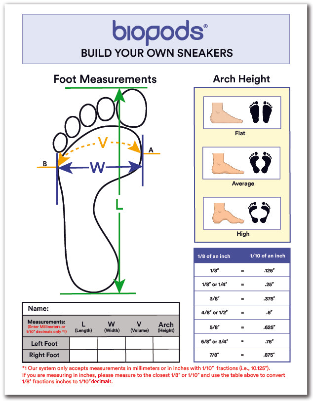 Print out a copy of the Measurement Form for each person receiving a pair of Biopods Stimsoles sneakers.