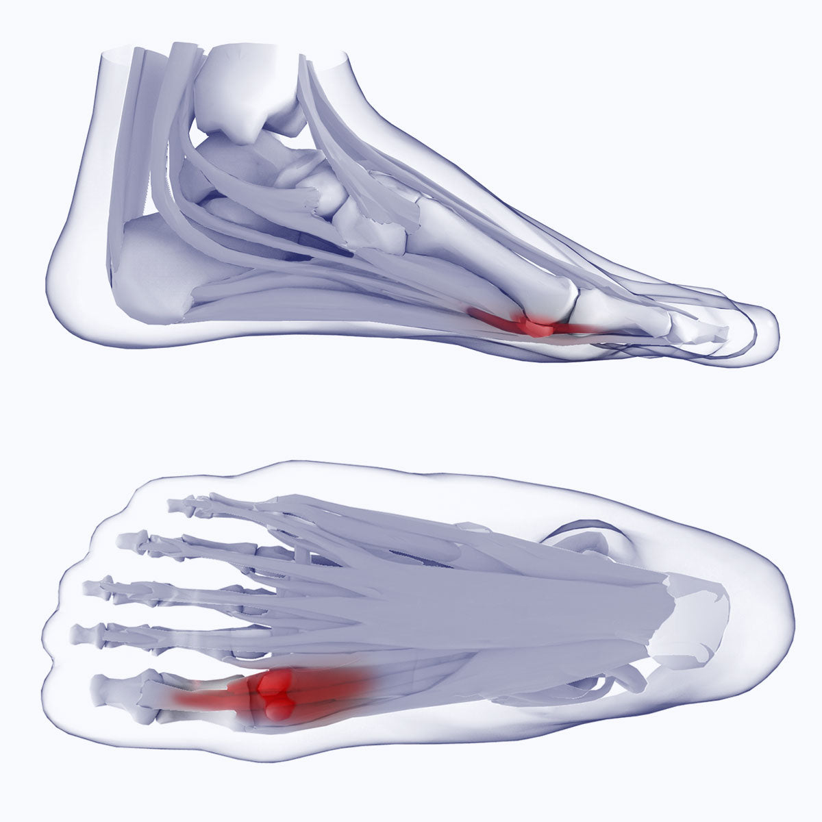 Over time, stresses created by the excessive pressures lead to local tissue damage and inflammation around the sesamoid bones.