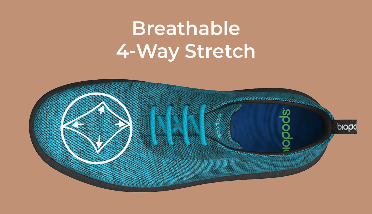 Our 4-way stretch knit uppers ensure your feet breathe and move freely.